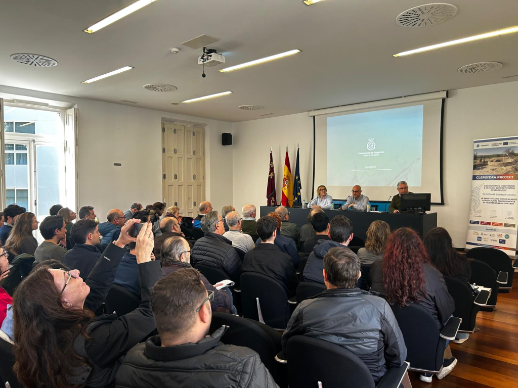 El pasado viernes 13 de marzo, la sede de la Comunidad de Regantes del Campo de Cartagena acogió a los participantes del V Simposio Hispano-Portugués sobre Tecnología de la Intrusión Marina en Acuíferos Costeros (TIAC’26) en el marco de la visita técnica “Hidrología, Agricultura y Medio Ambiente en el Campo de Cartagena y Mar Menor”, organizada por el CSIC y el Instituto Geológico y Minero de España (IGME-CSIC), con la colaboración de la propia CRCC, el MITECO, la Región de Murcia, el Club del Agua Subterránea y el proyecto europeo CLEPSYDRA (Interreg Euro-MED). La CRCC fue elegida como primera parada de una jornada que buscó ofrecer a investigadores y técnicos una visión directa de la interacción hidrogeológica entre la masa de agua subterránea del Campo de Cartagena y el Mar Menor.
